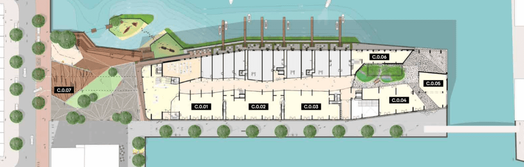 “De middelste unit (C.0.03) is heel geschikt voor deelconcepten. Bijvoorbeeld een bakkerij of espressobar waar je ook een flexwerkplek kunt huren. Maar ook concepten die aansluiten op de locatie aan het water, zoals de verhuur van boten of sup-boarden, hebben een mooie toegevoegde waarde. Er zijn talloze ideeën die een mooie bijdrage kunnen leveren aan het community gevoel van Jonas’.”